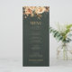 This elegant wedding menu card features a deep forest green background with soft beige florals and refined gold-toned typography. Designed for forest witch, green witch, and enchanted woodland weddings, it beautifully complements nature-inspired table settings. Fully customizable with your courses and names, this menu card adds a mystical yet timeless touch to your reception décor. Perfect for couples seeking an elegant witchy wedding aesthetic with a modern botanical feel.