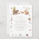 Simply create a cute woodland animals baby shower invitation with this template featuring an owl, fox, bear, squirrel, deer, mushrooms and more for your cottage core theme shower for the mom-to-be. TIP: Check out the other items in this collection with the same design for a complete and easy shopping experience for your baby shower party.