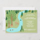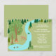 A charming illustration of a nature scene. A water stream gently flows downward towards a small pond. A turtle attempts to cross, while a deer sips in the stream. A sleepy fox naps underneath a tree. A family of ducks - dad, mom and babies swim contently. The rest of the scenery is a forest scene with the trees in pretty shades of green. Personalize this invitation for a nature or park theme birthday party. The text starts by saying "Over the Stream and through the Woods", however you can personalize it however you wish.