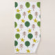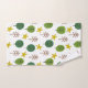 Cet ensemble de serviettes a un design scandinave répétitif d'une forêt dans les tons marron et vert et jaune étoiles.