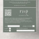 Personnalisable forêt moderne vert QR Code All In One Invitation. Inclut le RSVP avec le code QR qui donne accès à votre site Web mariage. Générer votre propre code QR unique via la fonction "personnaliser ce modèle" sur la page produit. Ajoutez votre URL à la zone fournie et un code QR flambant neuf générera sur la conception juste pour vous.