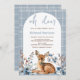 Collection de Baby showers en bois - Bébé mignon Cerf & Fleurs bleues rustiques Bienvenue dans notre collection de Baby showers en bois, avec un adorable cerf de bébé entouré de délicates fleurs bleu rustique aquarelle. Ce design charmant et élégant est parfait pour fêter l'arrivée d'un petit avec une touche de beauté d'inspiration nature. Que vous planifiez un rassemblement ou une grande fête, notre collection comprend des invitations magnifiquement coordonnées, des cartes de remerciements, des étiquettes de faveur, et plus encore, tout ce dont vous avez besoin pour créer une atmosphère boisée magique. Des bleus doux, des tonalités terreuses et des fleurs fantaisistes se rassemblent pour donner un cadre parfait à un baby shower rempli d'amour et de joie. Personnalisez vos objets facilement pour rendre votre événement vraiment spécial !