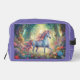 Belle photo colorée d'une licorne de forêt, est présentée de part et d'autre de ce sac de toilettes. Le sac est de 9,5 po x 8 po x 3,75 po, avec deux poches intérieures en maille, une zippée et une élastique. Le manche à main pratique sert de bracelet suspendu. Ce sac de voyage est fait de tissu robuste en polyester avec fermeture éclair, assurant que tous les produits sont entreposés en toute sécurité! Utilisez-vous ou offrez-vous un cadeau pour la fête des mères, les anniversaires, les fans de licorne et plus !