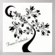 This Forever Enchanted... black and white poster features a silhouette girl sitting on a crescent moon admiring a beautiful silhouette flowering tree.