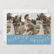 Modern and minimal wedding thank you photo card featuring a typography curved text that says "forever grateful" with 3 of your wedding pictures. You can add another photo on the back with a message. Denim blue color.
