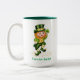 Forever Lucky Green Gnome & Monogram Two-Tone Coffee Mug
