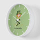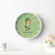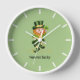 Cute forever lucky green gnome holding a clover on light lime green background. Text can be personalized. Lucky Clock!