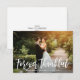 A beautiful image of the newly weds with trendy text. The bride and groom's image and back colour and text can be personalized. Add a personal thank you message and you can upload your own photo.