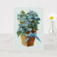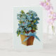 Blue Forget Me Not flowers in flower pot on a light blue background. Pretty vintage design.