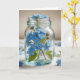 A collection of delicate blue forget-me-not flowers elegantly arranged in a clear glass jar, creating a simple yet captivating display for thinking of you.