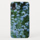 Phone case with photo of cloud of pale blue forget-me-not flowers.