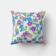 Original fine art design of colourful blue and pink Forget Me Not garden flowers by artist Carolyn McFann of Two Purring Cats Studio printed on a quality and customizable American Mojo brand pillow for all who love Forget Me nots.