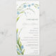 Wedding Program with an elegant bouquet of soft blue forget-me-not flowers with light green leaves and curved stems, spring or summer natural pastel colours, a romantic light bouquet of wildflowers. Botanical digital watercolor. Cute flower botany Wedding Program. Forget-Me-Not Collection.