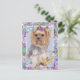 Encourage a friend or dog lover who has lots a Yorkshire Terrier pet when you send a postcard, greeting card or note card a "Forget Me Not" card by Friskybizpet Designs. Beloved Yorkie is framed in symbolic Forget-Me-Not flowers.