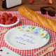 This beautiful and elegant plate features watercolor blue forget-me-nots, daisies and foliage. The text combines handwritten script and serif fonts for a stylish and modern look. This is perfect for a spring or summer rustic birthday.
