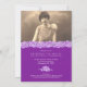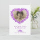 Double-sided purple mauve forget-me-not flowers floral celebration of life funeral memorial invitation. Purple and white with a heart for your photo on the front. Replace the sample text and two photo holders with your own special photos and event information details. Other matching items are and colours are available. Original hand-inked and watercolor washed art, forget-me-nots in a flower heart wreath design by Sarah Trett for www.mylittleeden.com