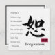 Featuring the Chinese character for forgiveness, the message on this square linen card reminds us just how important forgiveness is to our peace of mind. The back is white with a black border. See matching favour tag and sticker. See the entire Enlightenment Card collection in the INVITES | Invitations & Cards section.