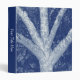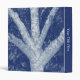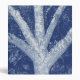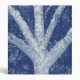 A photo of a tree with fanned out forked branches with a cyanotype effect.