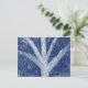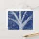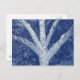 A photo of a tree with fanned out forked branches with a cyanotype effect.