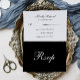 These elegant and modern wedding RSVP response cards feature a black and white with a classic layout and formal calligraphy. The back of the card is solid black with the word "Rsvp" in white calligraphy as a decorative element. This response card is perfect if you prefer to send a traditional, mail-in version to some or all of your guests.