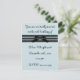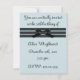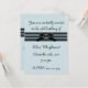 Black and blue set the tone for this elegant party invitation, with a blue background and a striped ribbon and bow going through the middle. Customize the text on the front and reverse sides of this card to personalize it.