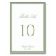 Guide your guests with timeless elegance using this classic sage green wedding table number. Featuring a clean white background, soft sage green border, graceful script heading, and a bold, easy-to-read number, this design blends traditional charm with a minimalist aesthetic. Perfect for classic, formal, garden, or modern weddings, this table number coordinates beautifully with sage green stationery and décor.