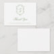Refined and elegant, this formal sage green monogram crest wedding thank you card features a classic floral crest with personalized initials on a clean white background. Designed for timeless weddings, the front showcases a graceful “Thank You” script and names that you can personalize, while the blank back allows guests to handwrite a personal message, making each note feel heartfelt and meaningful. Perfect for classic, garden, and romantic wedding themes, this card coordinates beautifully with matching sage green wedding stationery suites.