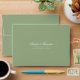 Elevate your wedding stationery with this formal classic sage green and white script wedding envelope. Featuring elegant calligraphy centered on a rich sage green background, this envelope offers a timeless and refined look. Perfect for formal, classic, and minimalist wedding suites, it pairs beautifully with matching invitations and enclosure cards for a cohesive presentation.
