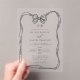 The Formal Elegant Black & White Bow Monogram Acrylic Invitations are perfect for couples seeking timeless sophistication. Made from sleek acrylic, these invitations feature a refined black bow design paired with a monogram for a personalized touch. The classic black-and-white colour scheme exudes elegance, while the clear acrylic gives a modern twist. Ideal for upscale weddings, these invites communicate style and formality, setting the tone for a memorable day. Customizable text in stylish fonts adds a unique, high-end flair for an unforgettable invitation experience.