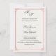 Our formal but modern wedding invitation in chic black and white with a touch of red features the bride and groom's monogram across the top in beautiful calligraphy script typography. Personalize with your ceremony details beneath. Includes space for the ceremony timing and church or venue address, along with information for the bride and groom's name with their families. Cards reverse to solid black. A chic design in black and white with a touch of red for modern couples and elegant events.