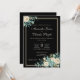Black formal wedding invitation with teal and cream floral arraignment