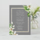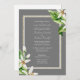 Formal Wedding Invitation. Elegant, Traditional. Simple. Both sets of parents listed. Grey. Foliage & White Floral. Two Venues.