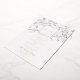 Branches of white orchids, hand-drawn in graphite pencil, intertwine in this simple but sophisticated, elegant yet chic, monogram wedding invitation. The branches of orchids form a stylish floral wreath that looks formal but modern. A contemporary classic design for black tie weddings with an organic, natural feel. It features elegant script calligraphy and real foil.