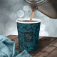 Elegant wedding paper cup in a formal style featuring a classic layout of gold frame and text with an ornate paisley background in shimmering teal. Add your initials in this beautiful script font and wedding date in a classic serif with it's traditional appeal. Search ID767 to see other color choices for this design.