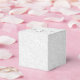 Elegant white on white filigree print pattern with your names and thank you in chic charcoal grey (or any colour) lettering, these 2" square party favour boxes are beautiful for wedding favours, bridal shower favours or any special occasion.