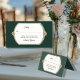 PLACE CARDS DARK EMERALD FOREST GREEN AND WHITE WITH GOLD WEDDING RECEPTION - you will hand write your guest's name and table number or name on the lines provided. Elegant, formal dimensional looking Victorian baroque frame with your Table assignment & your message to your guests with Bride and Groom's names. Can be customized to any event or occasion. All artwork was graphically designed by internationally licensed artist and designer, Audrey Jeanne Roberts ©