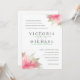 Abstract stargazer pink flowers on crisp white background with wispy green leaves and whimsical swirls border this beautiful wedding invitation set. Perfect for romantic garden weddings or formal country estate weddings in any season -- simply change the backbround colour for spring, summer, autumn, fall, and winter. Classic formal typography is sure to please the traditional vintage bride, but a splash of sophisticated styling makes it trendy enough for modern couples. Simple but stylish elegance at bargain discounts and affordable prices for frugal brides on a budget. Shown on Basic card stock -- or upgrade to premium quality Felt, Linen, Recycled, or Metallic paper options. Customize it to change the font colours and styles. Please contact us if you would like this design modified to match your bridal party colour theme. This easy to use template can also be personalized for any special occasion such as engagement and marriage announcements, anniversary party invitations, womens feminine birthday party invitations, corporate and business events, charity fundraisers. Please contact us for assistance if you need help to create your own unique one-of-a-kind invitations. CARD SIZE: 5.5 x 7.5 inches -- other sizes, colours, and paper styles available.