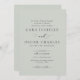 Avec une typographie classique et élégante, ce faire-part de mariage formel donne le ton à un mariage intemporel. L'arrière - plan vert sage est intemporel mais il peut aussi être modifié en cliquant sur "Personnaliser". Parfait pour une affaire de cravate noire. Des pièces de coordination sont également disponibles dans la suite mariage.