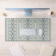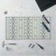 Aztec a influencé les formes et le motif de ligne dans les couleurs rouille/terre cuite et un détail couleur crème sur un arrière - plan bleu turquoise. V = motif vertical.