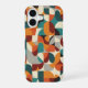 Formes géométriques arrondies et anguleuses entrelacées dans un style vintage.