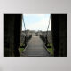 A unique photograph, taken from the inside of the Castillo de san Marcos Fort in St. Augustine Florida looking out across the drawbridge to the castle entrance. the coquina walls of the fort frame the composition.