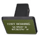 Stencil style white font on Army green background.