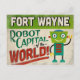 A funny Fort Wayne Indiana vintage travel postcard featuring a friendly robot with fun retro style text that says, "Fort Wayne, Robot Capital of the world!"