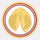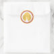 A sticker featuring an illustration of a fortune cookie at centre. Cookie is surrounded by a red circle. Circle is filled with white. Background is gold. Look for matching items at Jill's Paperie.