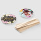 Elegant birthday party paper plate for the lady who is turning 40! Hand painted watercolor florals (of magnolia and camellia) in pink and cream around the card with faux gold text that says "Forty & Fabulous." The background is a wooden texture. Customize this product by adding your name and photo.
