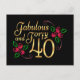 Forty Fabulous Gold Black Red Roses Birthday Postcard