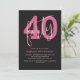 Forty Modern Bold Black & Pink 40th Birthday Invitation