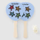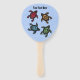 This program hand fan is blue with four abstract black turtles with colourful markings on their shells in red, yellow, blue and green. Customize your text on the front and back with the template.