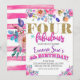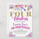 Four and Fabulous Girls Floral 4th Birthday Invitation