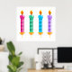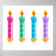 Four candles in nice bright colours. This design looks really effective on these Poster